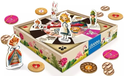 Dans ce jeu inspiré des aventures d’Alice au Pays des Merveilles, incarnez un personnage emblématique et tentez de collecter un maximum de biscuits avant la fin du temps imparti. Progressez sur le plateau tout en évitant les pièges du terrier du lapin et en profitant des effets spéciaux des cases pour devancer vos adversaires. Le joueur qui aura accumulé le plus de points grâce aux biscuits remportera la partie !
