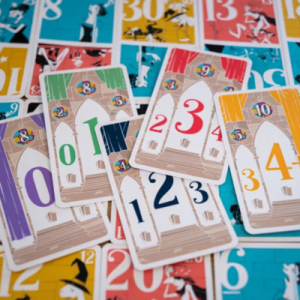 Les cartes présentent un numéro et une couleur dans la partie supérieure et un autre numéro et une autre couleur dans la partie inférieure. Après avoir choisi le sens de vos cartes au début d’une manche, vous ne pourrez plus en changer sans “chouiner”.
