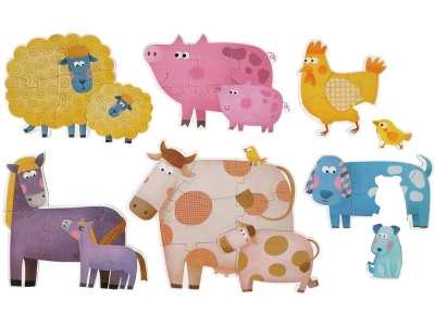 Les puzzles ont un nombre de pièces évolutif pour accompagner l'enfant dans sa progression : 3, 4, 5, 6 et 7 pièces. Chaque puzzle dispose d'un petit modèle en 1 pièce : bien mieux qu'un modèle dessin car au toucher le contour de la forme du modèle aidera l'enfant.